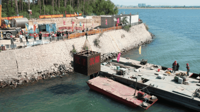 长春支线取水口沉箱吊装作业,可能存在的安全风险为机械事故、触电事故、淹溺、环保事故等,现场工作人员模拟演练沉箱吊装作业及环境污染事件。