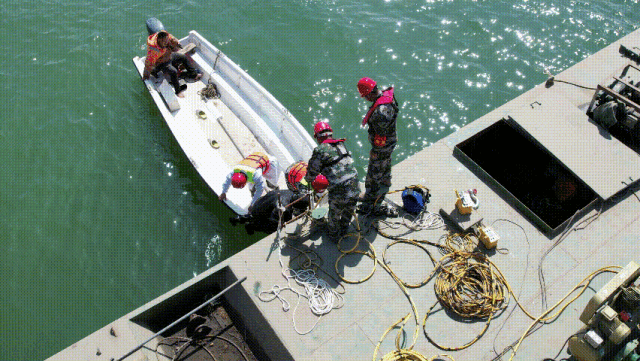 经过紧张抢险,潜水员被成功救助到搜救船上,身体无大碍,项目经理宣布应急响应结束。