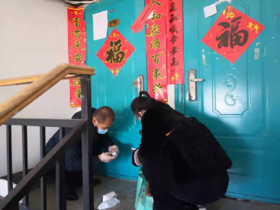 于胜利为隔离户安装门磁报警器和贴封条