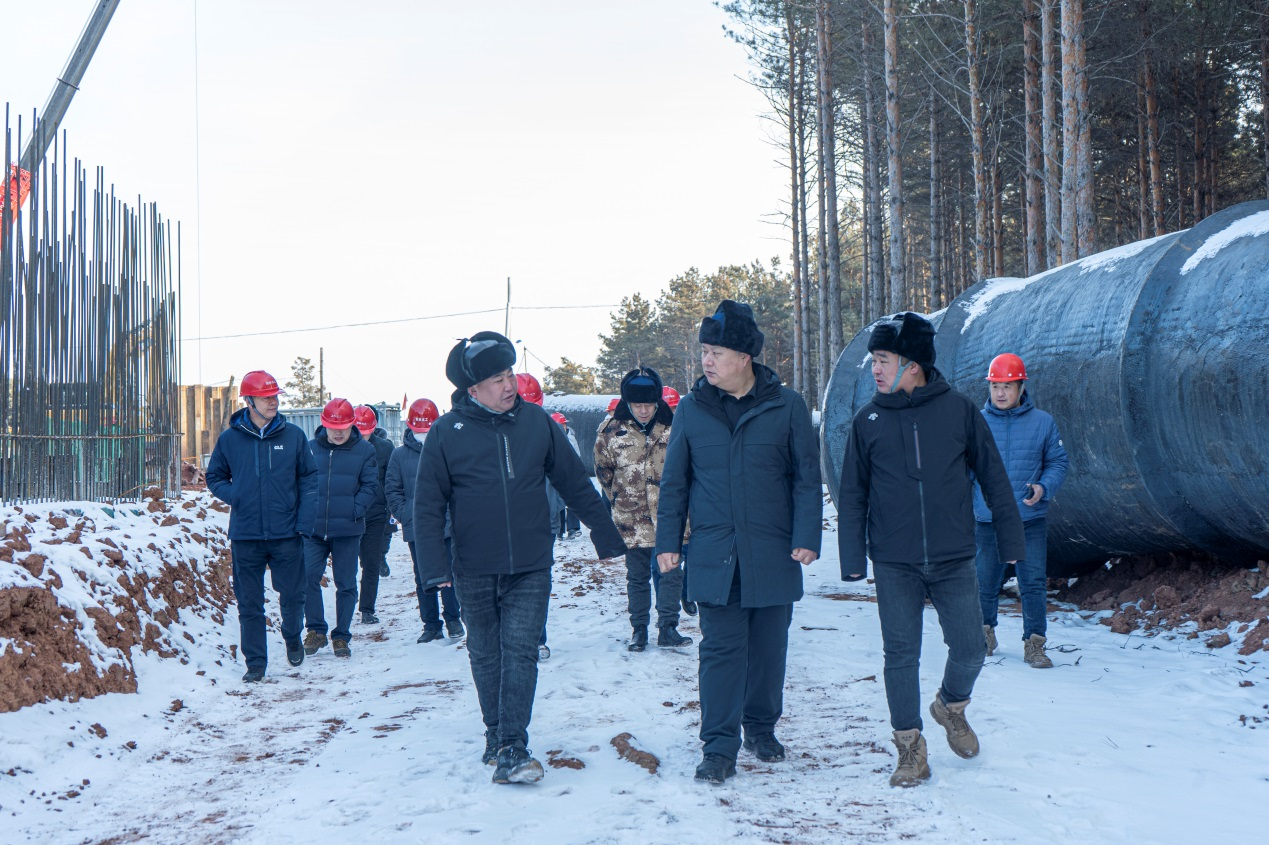 在泵站取水口,王国彦仔细询问取水口开挖高程,得知进水口取水头部的施工工艺开创东北高寒地区施工先河,并首次在省内水利工程建设中实施,王国彦表示赞赏。