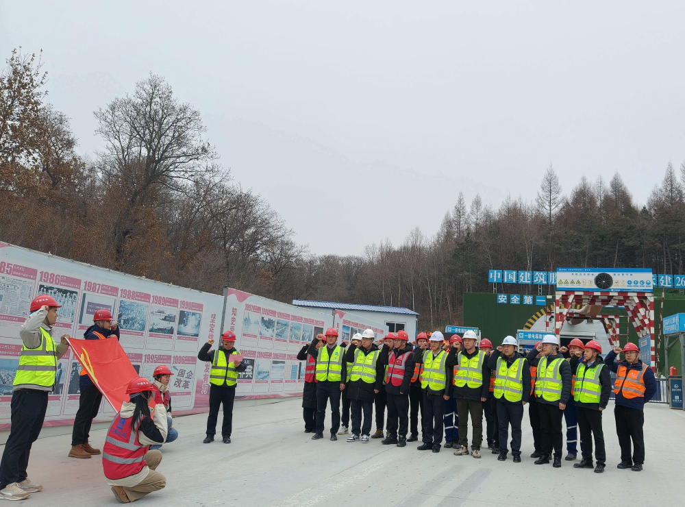 洞内观摩结束后,全体党员在26号洞洞口整齐列队,面向鲜红的中国共产党党旗,高举右拳,在领誓人的带领下庄严重温入党誓词。“我志愿加入中国共产党……”铿锵有力的誓言回荡在施工现场,既强化了党员的身份意识与责任担当,更凝聚起攻坚克难的精神力量,彰显出参建党员投身项目建设的坚定决心。