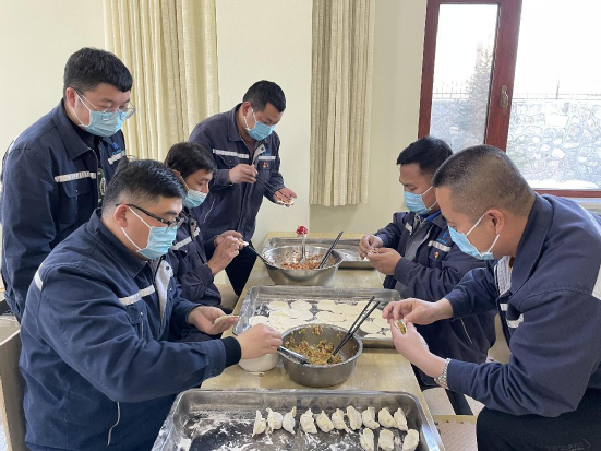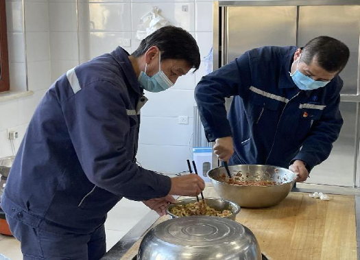 为了让坚守的职工都能做好“心”准备、“心”防护、拥有“心”健康,组织驻站职工在餐厅开展包饺子活动。大家分工协作,拌陷、和面、搓面球、擀面皮、包饺子,纷纷找到自己的拿手绝活,整个活动中体现出“家”的氛围。经过一个多小时愉快的劳动,一盘盘精美别致的饺子呈现在大家的面前。作为突击队队长付国辉同志最关心的就是坚守职工的思想动态,他亲切的与大家拉起了家常,耐心询问职工家里有没有什么困难。看着大家眼神坚定,不约而同的表达抗疫决心,一定能战胜疫情!