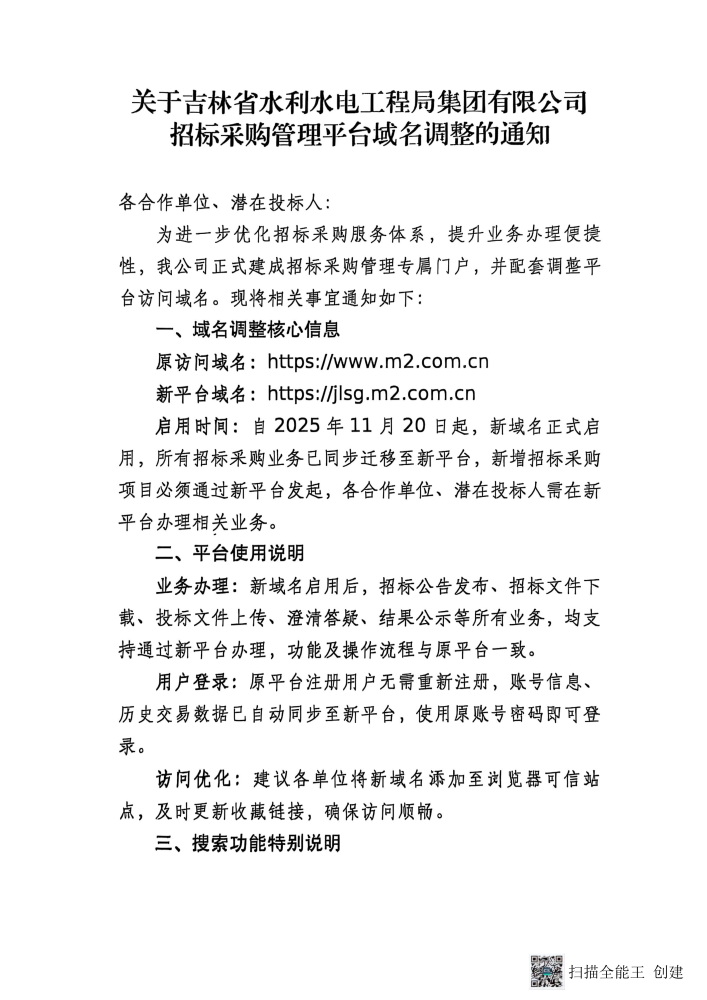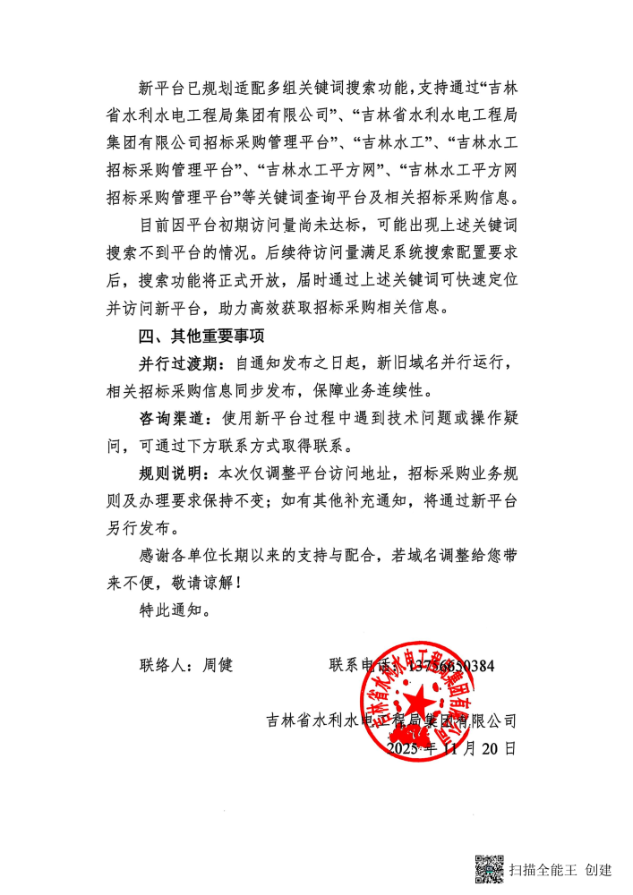 关于吉林省水利水电工程局集团有限公司招标采购管理平台域名调整的通知