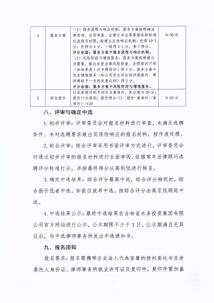 吉林省地方水电集团有限公司常年法律顾问选聘公告(二次)