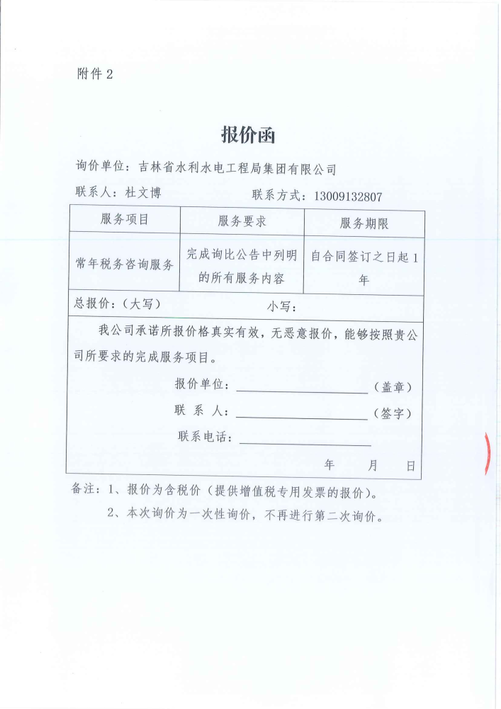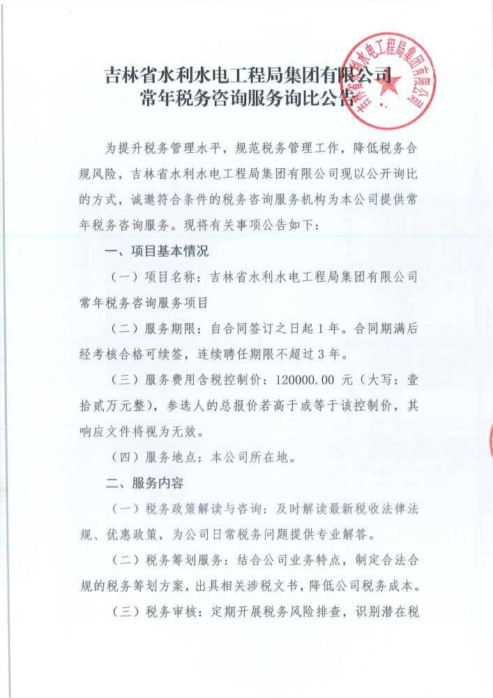 吉林省水利水电工程局集团有限公司常年税务咨询服务询比公告