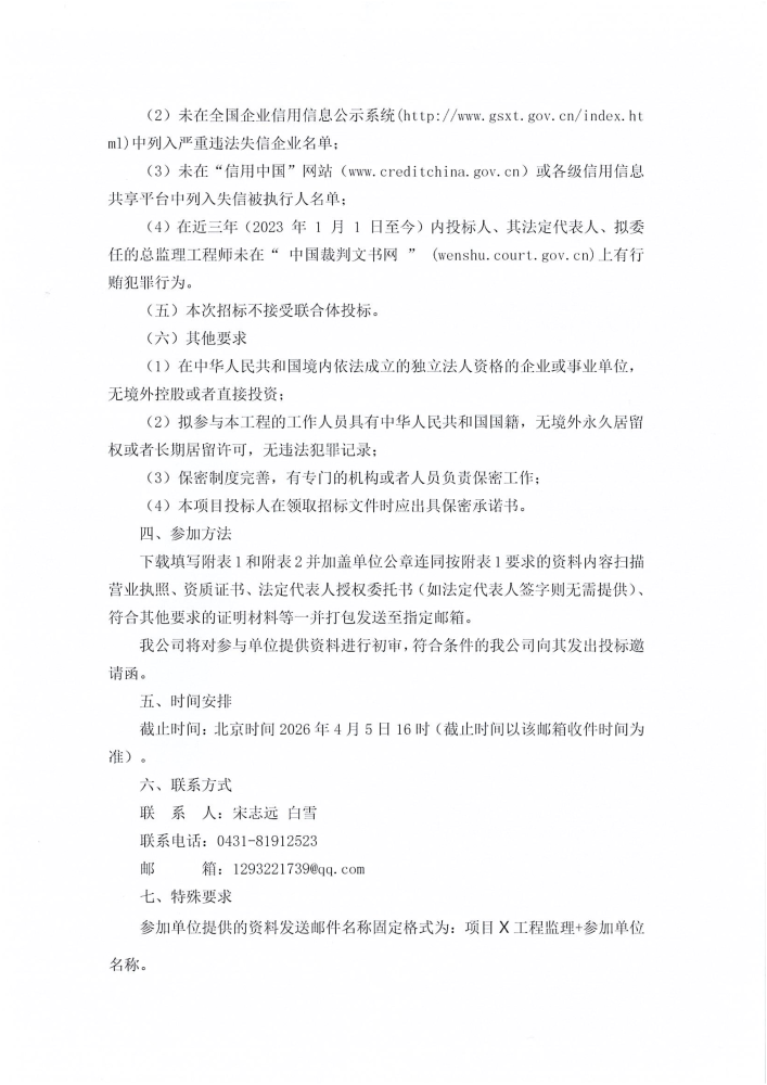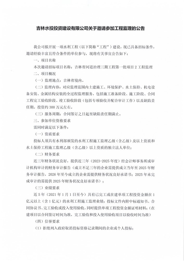 吉林水投投资建设有限公司关于邀请参加工程监理的公告(项目2)