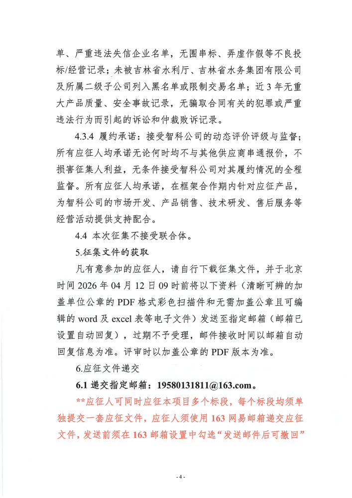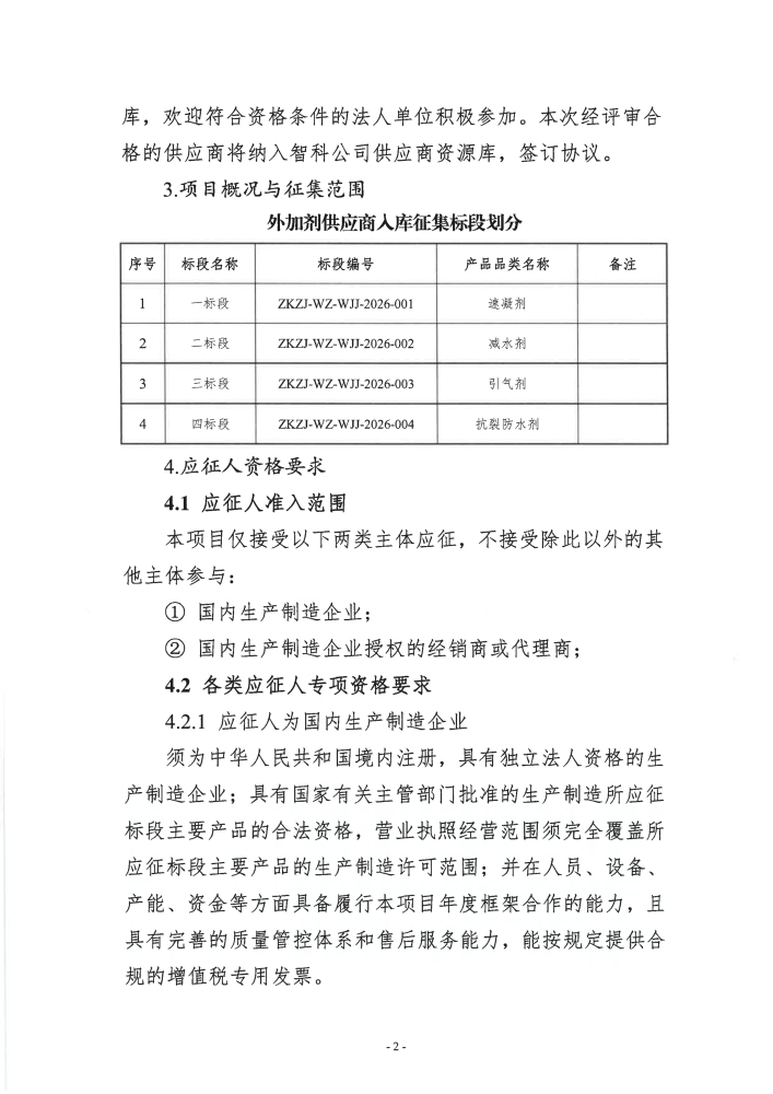 吉林省智慧水利科技有限公司2026年度外加剂供应商入库征集公告