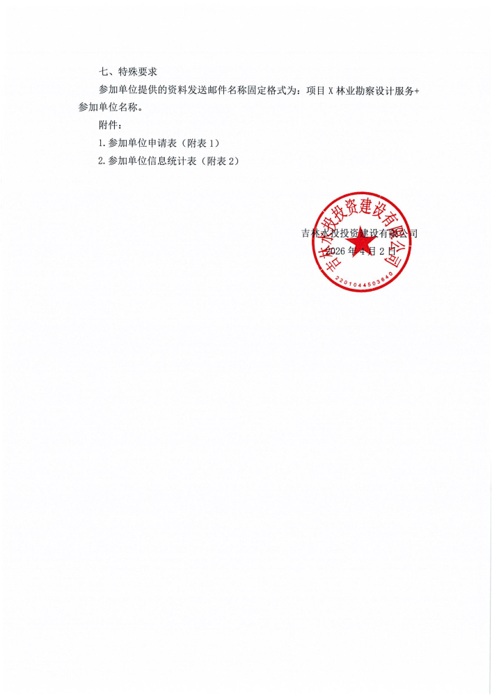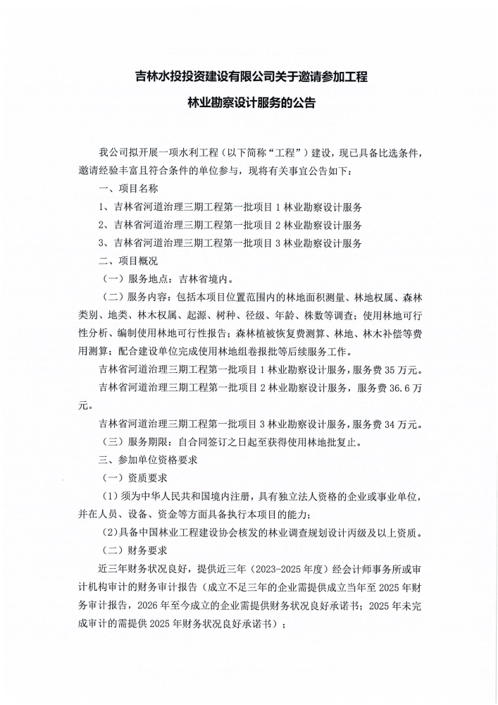 吉林水投投资建设有限公司关于邀请参加工程林业勘察设计服务的公告