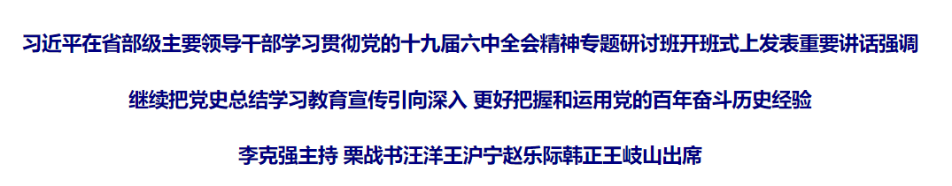 李克强在主持开班式时指出,习近平总书记的重要讲话,深刻阐述了推进马克思主义中国化时代化、正确把握社会主要矛盾和中心任务、重视战略策略问题、永葆党的马克思主义政党本色、党史学习教育常态化长效化等五个问题,强调要深入研读和领会党的十九届六中全会决议,更好把握和运用党百年奋斗历史经验,弘扬伟大建党精神,为实现党的第二个百年奋斗目标而不懈努力,有很强的政治性、理论性、指导性,对于全党深刻认识“两个确立”的决定性意义,进一步增强“四个意识”、坚定“四个自信”、做到“两个维护”,具有十分重要的意义。要把思想和行动统一到讲话精神上来,统一到党中央决策部署上来,真抓实干,以实际行动迎接党的二十大胜利召开。