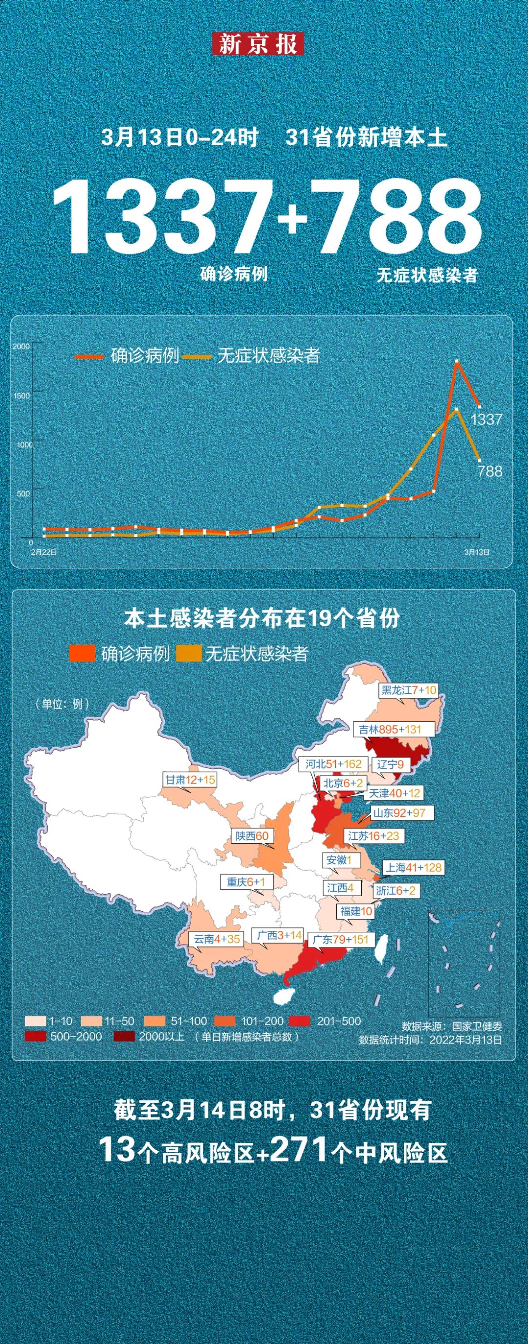 3月13日新增本土“1337+788” 一图看懂病例分布