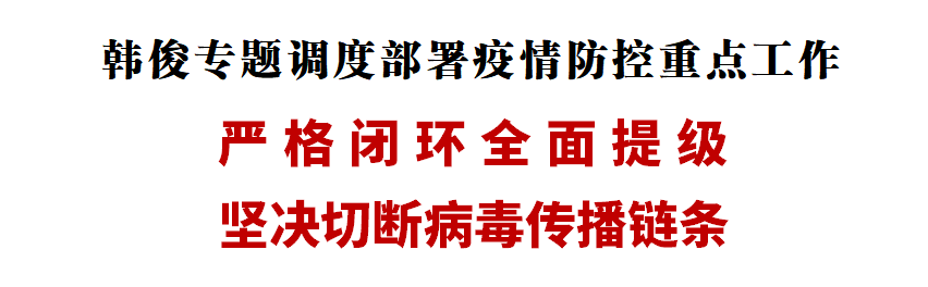 3月25日,省委副书记、省长韩俊专题调度部署社会面提级管控工作。他强调,要深入贯彻落实习近平总书记关于疫情防控工作的重要讲话重要指示精神,按照孙春兰副总理调研要求,加大疫情管控防治力度,全面提级管控、严格闭环管理,坚决防止发生聚集性疫情,确保尽快实现社会面清零目标。