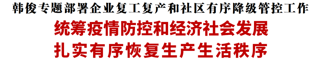 企业复工复产工作是实现社会面清零后的一项重要工作。韩俊强调:一要有序释放复工复产人员,采取“驻厂+宿舍+点对点通勤”等方式推动符合条件的企业职工有序返岗,为企业补充新生力量。