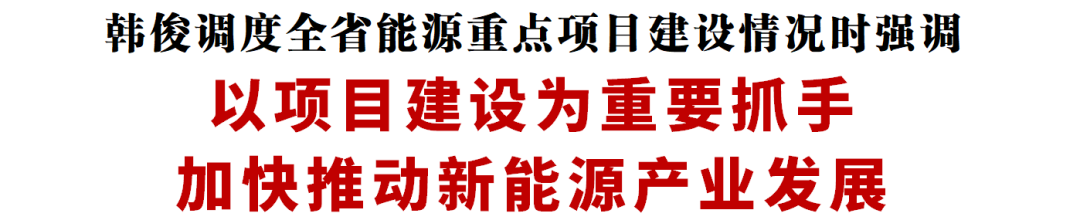 近日,省委副书记、省长韩俊调度全省能源重点项目建设情况。他强调,要深入贯彻习近平总书记重要讲话重要指示精神,落实党中央、国务院决策部署,按照省委省政府工作要求,抢抓“双碳”机遇,立足风、光、水、地热等新能源和可再生能源优势,加快全省能源重点项目建设,加快推动资源优势转化为产业优势,全力打造国家级清洁能源生产基地。