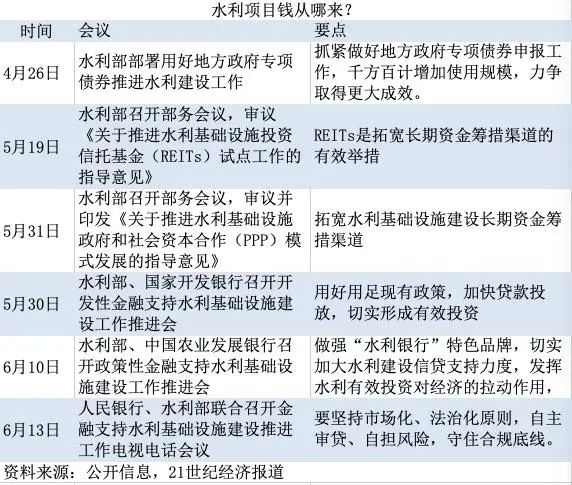 新兴的基础设施REITs也将是融资渠道之一。5月19日水利部召开部务会议,审议《关于推进水利基础设施投资信托基金(REITs)试点工作的指导意见》。会议表示,推进水利基础设施投资信托基金(REITs)试点工作,是创新水利投融资机制,适应水利基础设施建设融资需求、拓宽长期资金筹措渠道的有效举措。