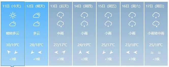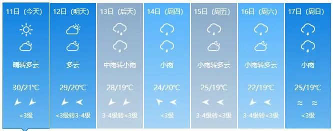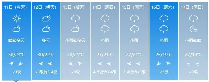 预计今天午后到明天白天,全省大部分地区有3级左右偏东风。