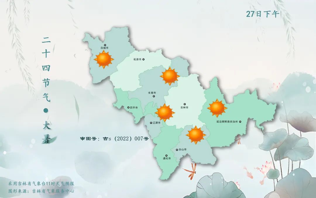 今天午后,全省晴有时多云,白山、长白山保护区部分地方有阵雨。