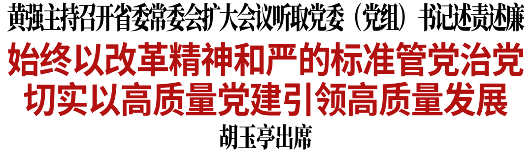 1月5日,省委书记黄强主持召开省委常委会扩大会议。省委副书记、省长胡玉亭出席会议。
