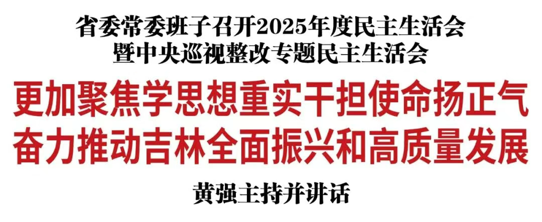 按照党中央部署,1月15日,省委常委班子利用一天时间,召开2025年度民主生活会暨中央巡视整改专题民主生活会,以中共中央政治局民主生活会为标杆,围绕“深入学习贯彻习近平新时代中国特色社会主义思想,全面贯彻落实党的二十届四中全会精神,坚决落实中央巡视整改政治任务,以打攻坚战、持久战的决心和恒心,锲而不舍落实中央八项规定精神,推进作风建设常态化长效化,以优良作风凝心聚力、真抓实干,奋力开创中国式现代化建设新局面”这一主题,紧密结合思想、工作和作风实际,检视问题不足,进行党性分析,严肃开展批评和自我批评,更加聚焦学思想、重实干、担使命、扬正气,奋力推动吉林全面振兴和高质量发展。省委书记黄强主持会议并讲话。中央第3督导组负责同志到会指导并进行点评。中央巡视办同志到会指导。