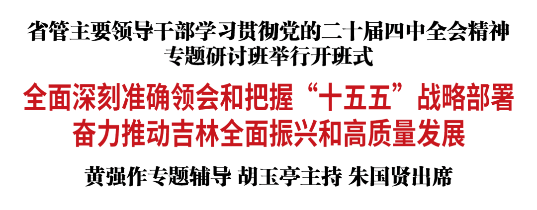 2月3日,省管主要领导干部学习贯彻党的二十届四中全会精神专题研讨班举行开班式。省委书记黄强出席并作专题辅导。他强调,要深学细悟习近平总书记在省部级主要领导干部专题研讨班上的重要讲话精神,全面深刻准确领会和把握“十五五”战略部署,奋力推动吉林全面振兴和高质量发展。省委副书记、省长胡玉亭主持开班式。省政协主席朱国贤出席。