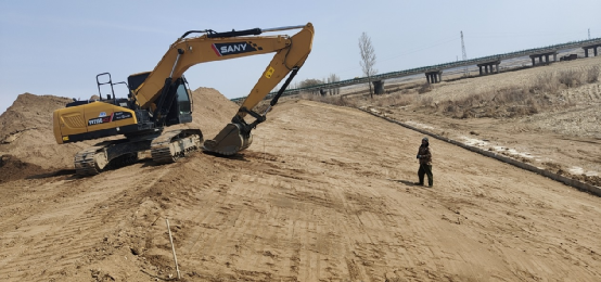 “起步就冲刺、开局就决战”,在辉发河重点治理工程(辉南县段)二期工程项目施工现场,整个工地机器轰鸣,挖掘机在削坡、振动碾在碾压、翻斗车在自卸,约30名工人在紧张忙碌着,一派繁忙景象,各项施工正在有序推进。