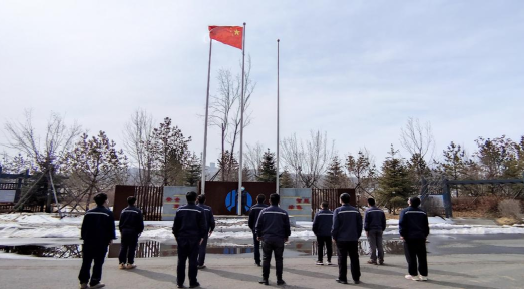 会前,举行升旗仪式。随着国歌响起,在泵站驻守人员的注视下,五星红旗冉冉升起,在空中迎风飘扬。
