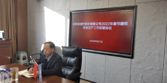 为进一步落实责任,强化监管,切实贯彻落实好1月26日集团公司党委书记、董事长吕鑫,副总经理王世军在检查供水公司春节期间安全生产工作时的讲话精神,切实从生产运行、安全保障、疫情防控等方面做好公司春节期间的各项工作,保证公司春节期间安全供水工作平稳开展。1月27日上午9时,公司党总支书记、总经理贾洪玮组织召开了吉林省城市供水有限公司2022年春节期间安全生产工作部署会议。会议由副总经理姜辉主持,总经理助理杜敏江、各职能部门负责人参加会议。