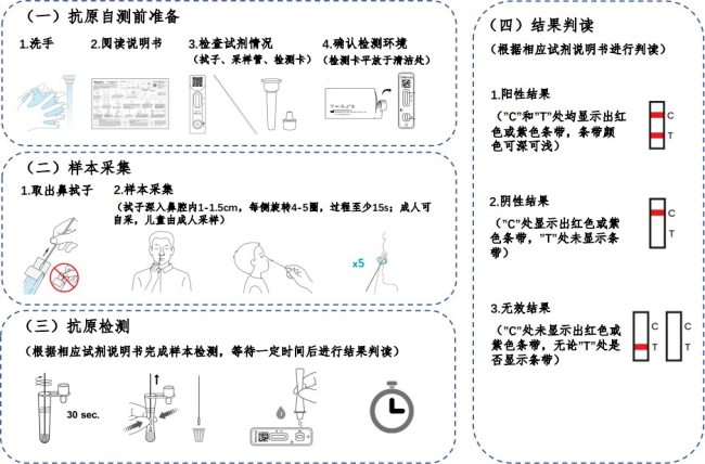 抗原自测流程示意图(具体参照特定试剂盒说明书)