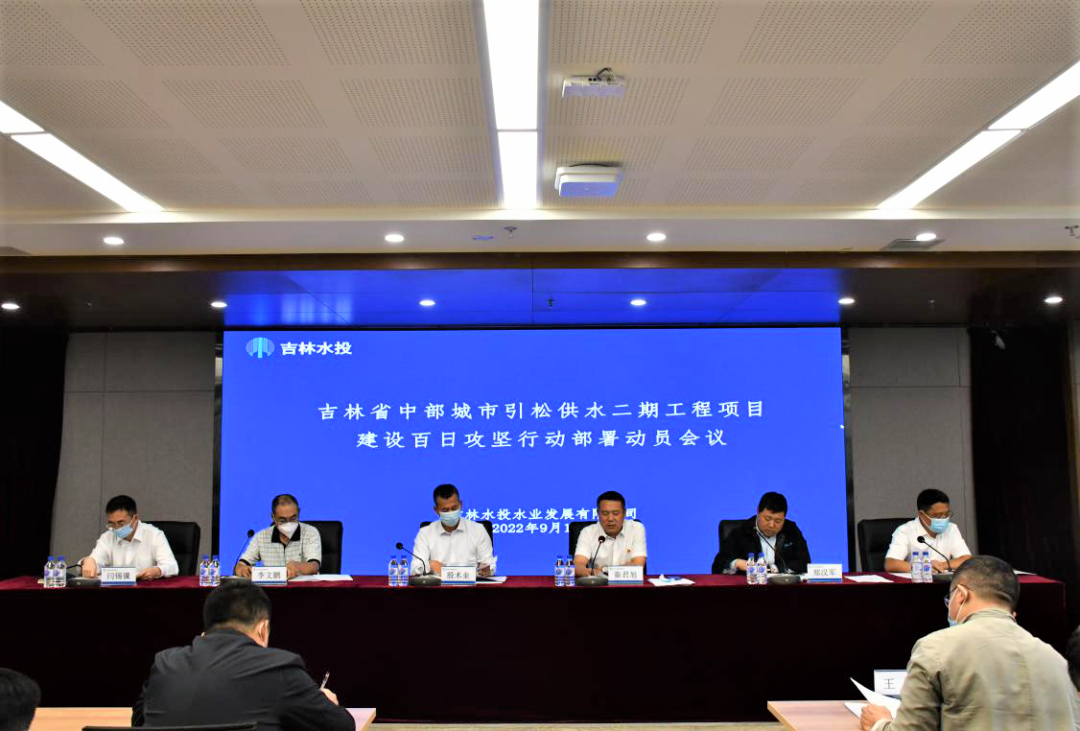 水业发展公司党总支副书记、总经理秦君旭主持会议。会上公司副总经理李文鹏传达了《吉林省水务投资集团有限公司项目建设百日攻坚行动实施方案》和《吉林水投水业发展有限公司二期工程项目建设百日攻坚行动实施方案》,公司党支部副书记、副总经理袁耀雷通报了中部引水二期工程2022年度工程建设进展情况,各参建单位代表就如何完成好二期工程项目建设“百日攻坚”行动工作作了表态发言,会上水业发展公司与部分参建单位签订了项目建设“百日攻坚”行动任务目标责任状。