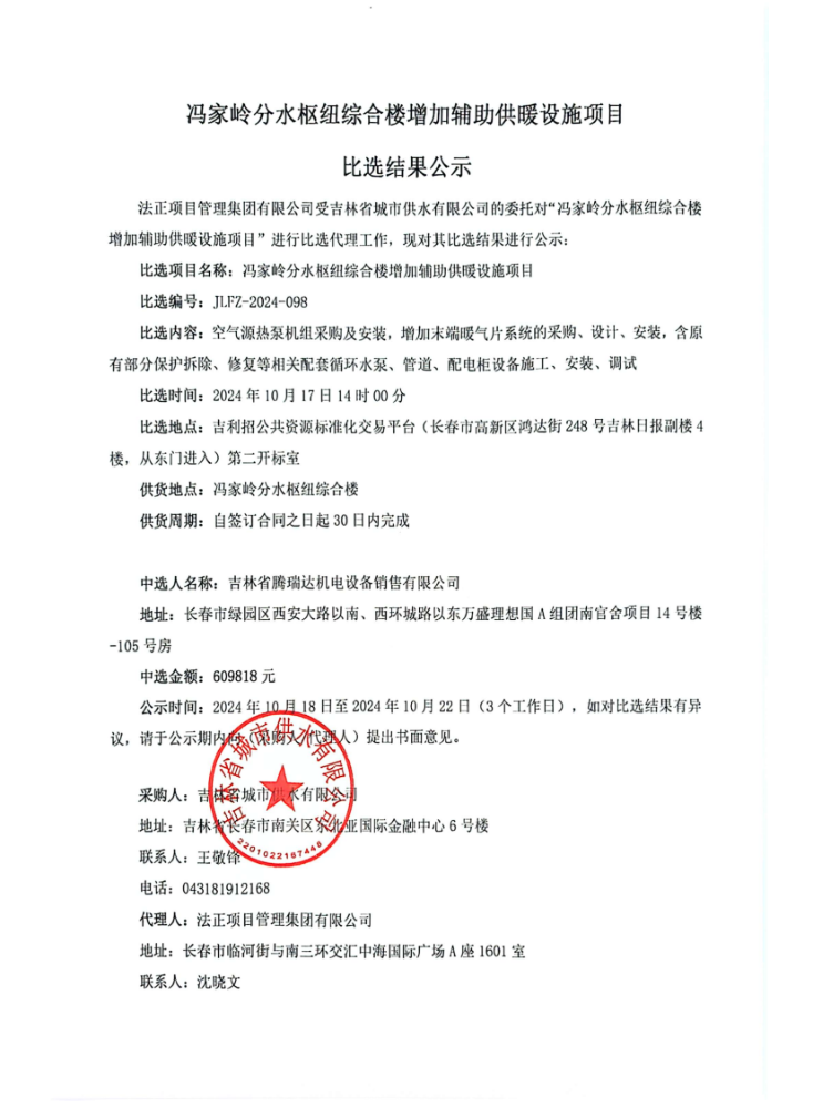 冯家岭分水枢纽增加供暖设施项目比选结果公示