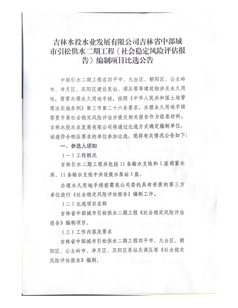 吉林水投水业发展有限公司吉林省中部城市引松供水二期工程