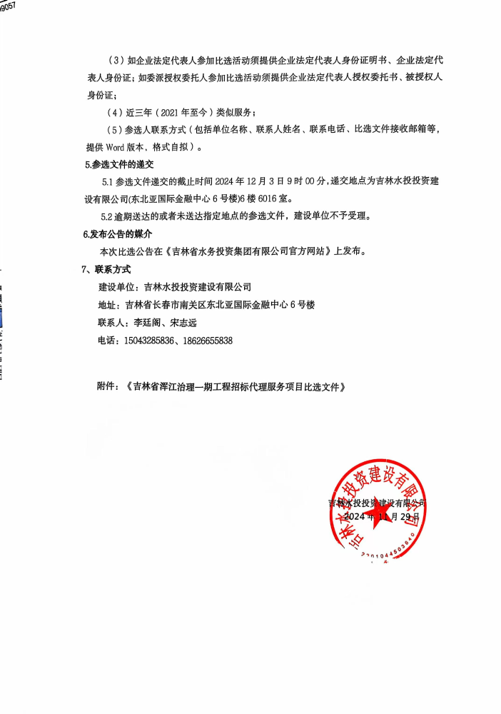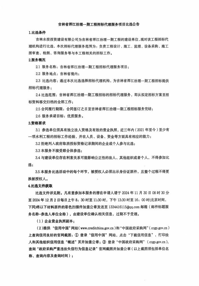 吉林省浑江治理一期工程招标代理服务项目比选公告
