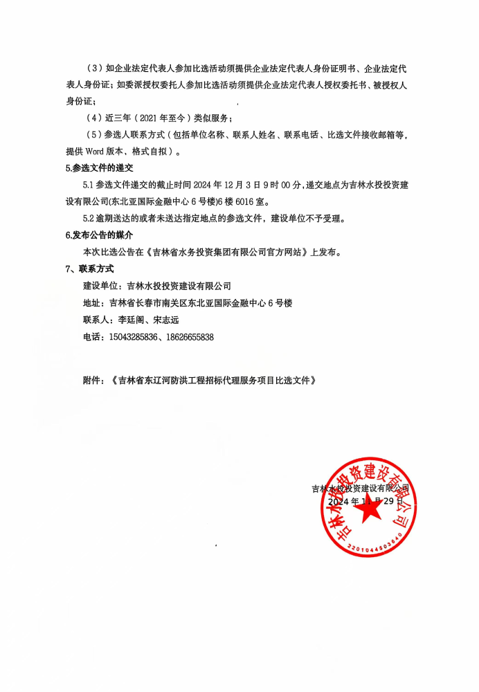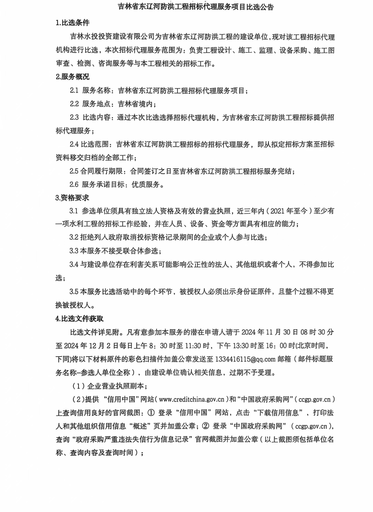 吉林省东辽河防洪工程招标代理服务项目比选文件