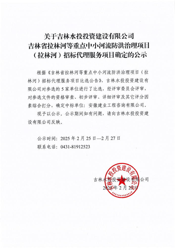 (拉林河)招标代理服务项目确定的公示