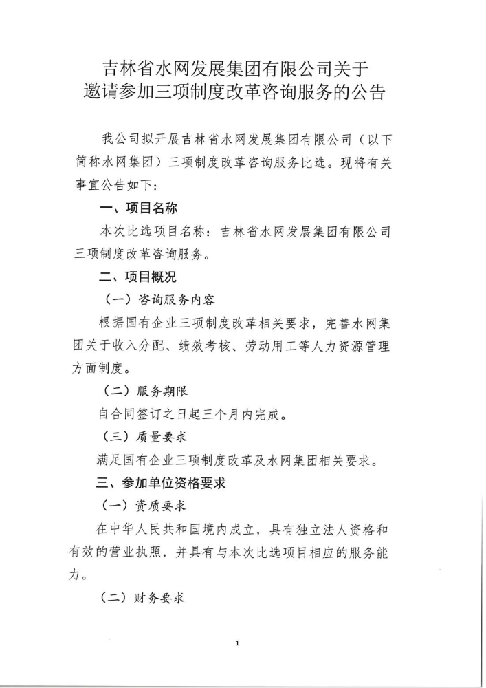 吉林省水网发展集团有限公司三项制度改革咨询服务报名公告