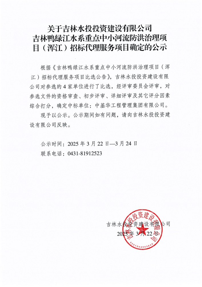 关于吉林水投投资建设有限公司吉林鸭绿江水系重点中小河流