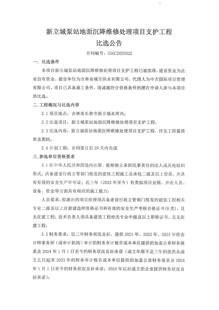 新立城泵站地面沉降维修处理项目支护工程比选公告