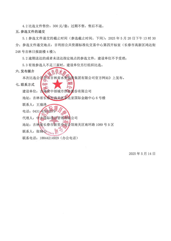 吉林省中部城市引松供水工程长春干线出口新建拦沙闸项目比选公告