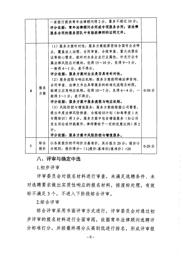 吉林省水务投资集团有限公司常年法律顾问选聘公告