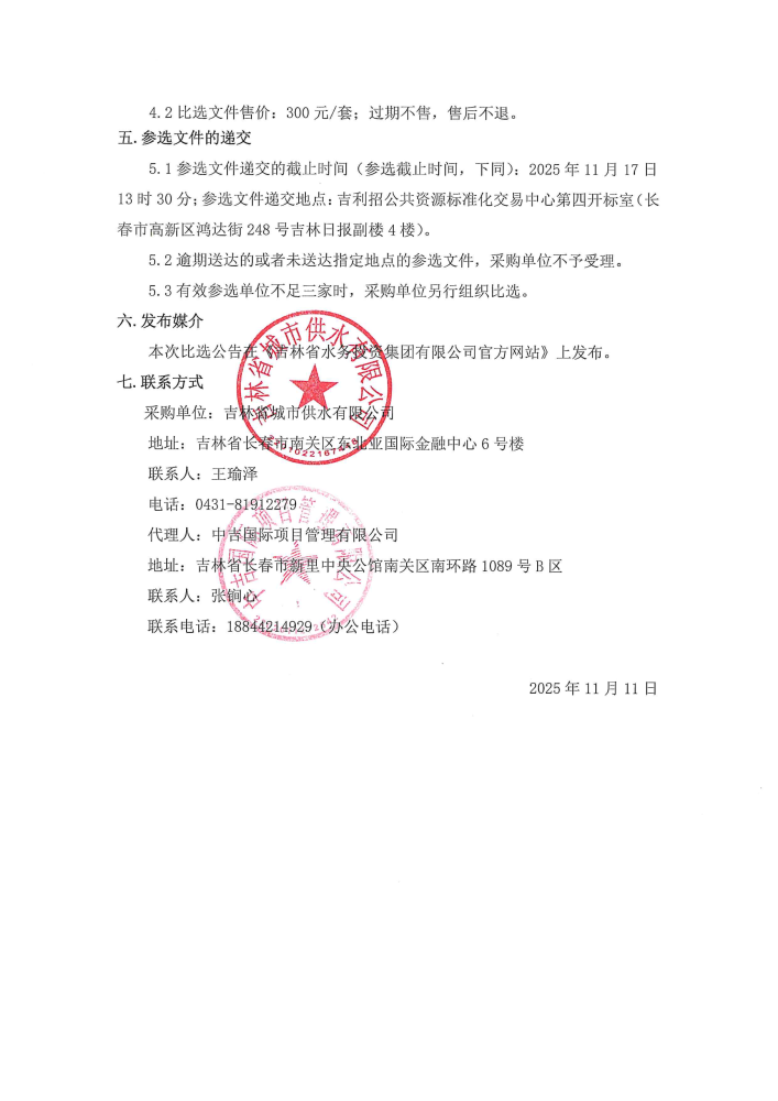 吉林省城市供水有限公司水下机器人管网安全检测服务比选公告