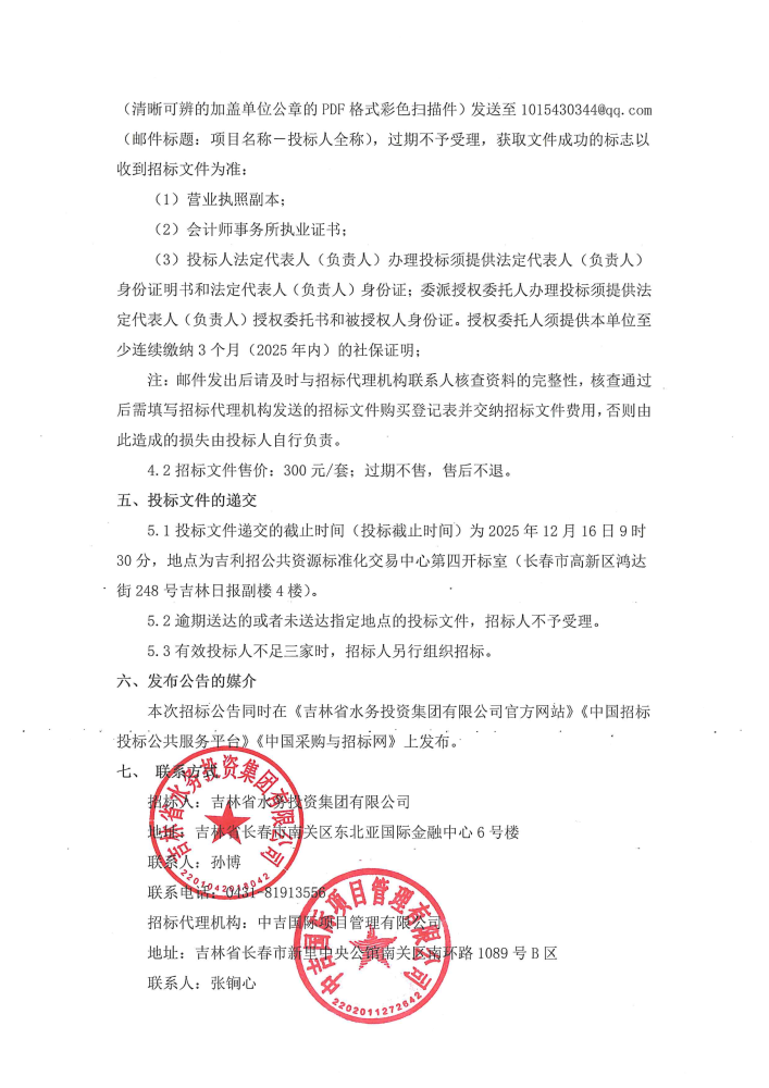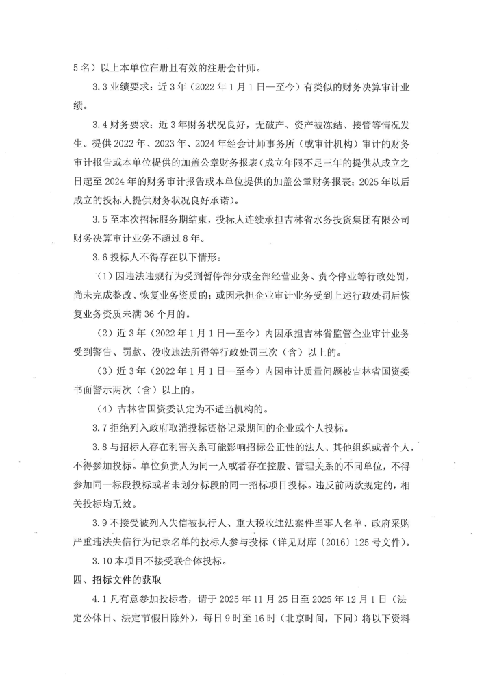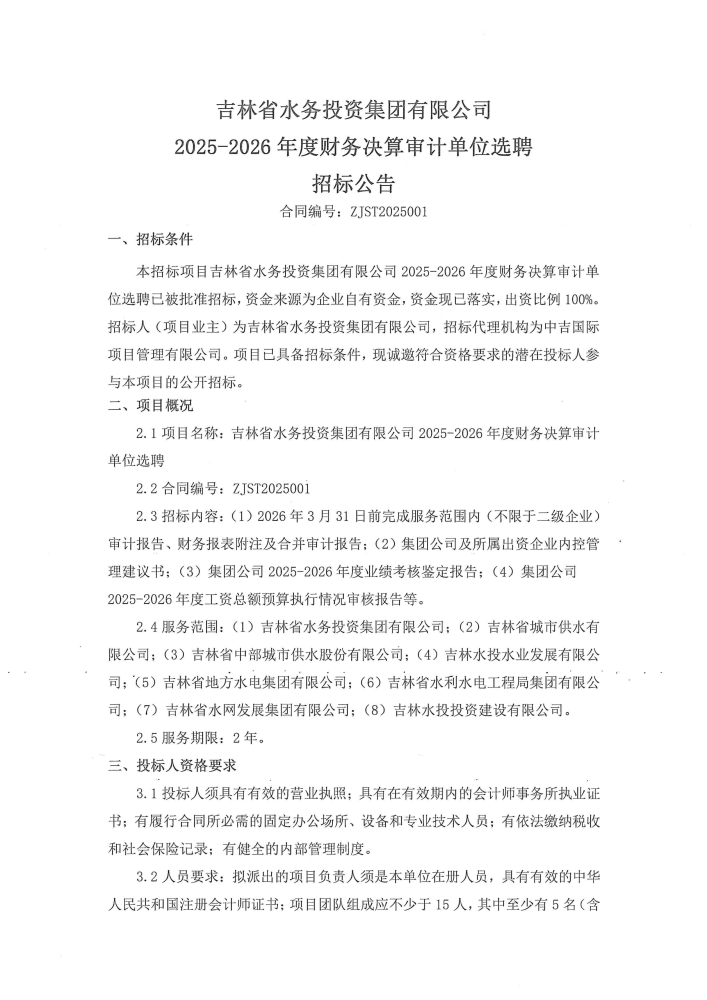吉林省水务投资集团有限公司2025-2026年度财务决算审计单位选聘招标公告