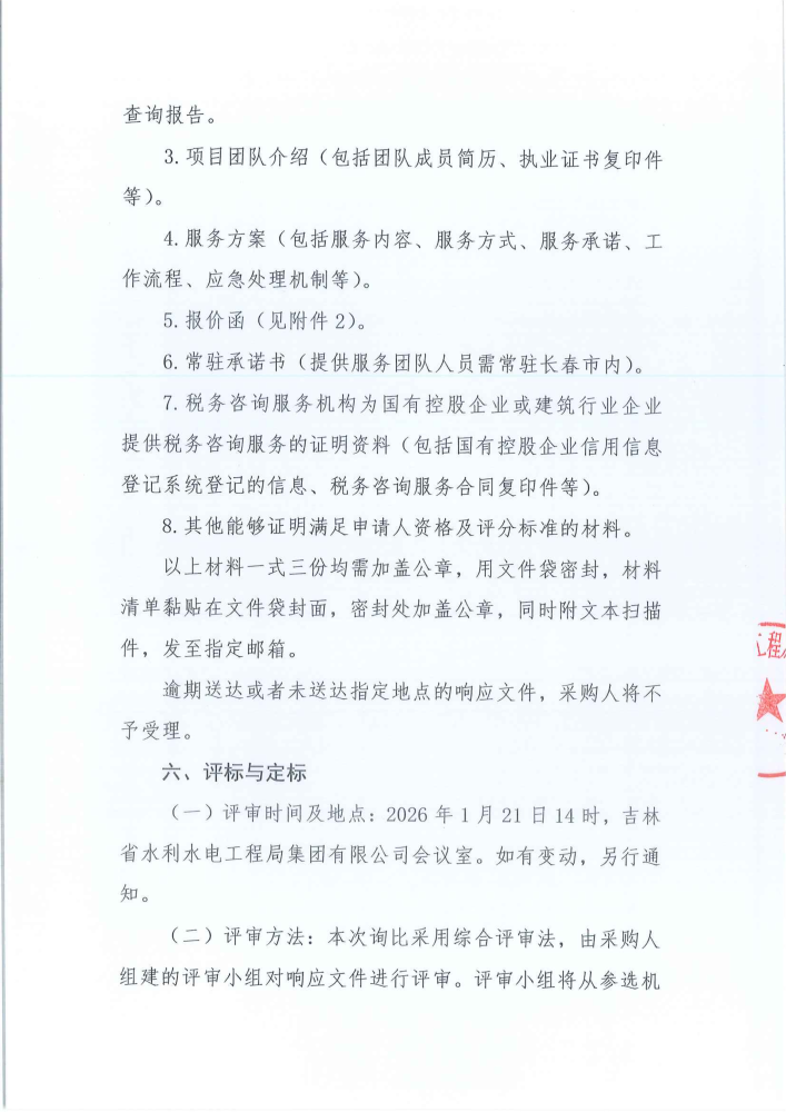 吉林省水利水电工程局集团有限公司常年税务咨询服务询比公告