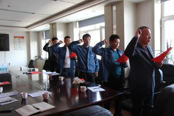 为牢记初心使命,周春瑞带领全体党员同志们重温入党誓词,面对鲜红的党旗,大家高举右手庄严宣誓,重温自己对党忠诚的誓言,表达了为党的事业奋斗终身的决心。
