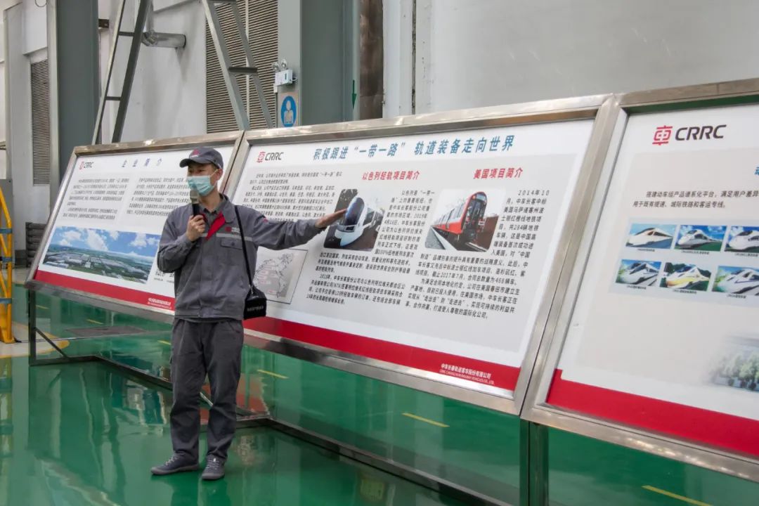 大家跟随中客工作人员参观了装配一车间总组装配现场,了解了中客发展现状,观看了习近平总书记到中客调研的视频资料、参观了党建宣传阵地。通过工作人员的讲解,大家对中客的发展历程、经营管理方式、企业文化以及党建工作创新有了更深入的了解。