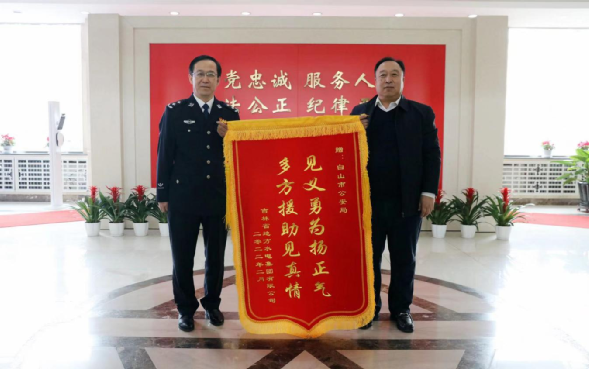 2月28日,地方水电集团党委书记、董事长谭英一行,代表地方水电集团专程赶赴白山,向白山市公安局送上一面绣有“见义勇为扬正气、多方援助见真情”的锦旗,以表达地方水电集团对白山市公安局党委关心关爱见义勇为人员、及时协调救助公司职工石春泉的感谢之情。受到白山市副市长、市公安局党委书记、局长徐善华;市政府副秘书长李爱华;市公安局副局长丁洋;市公安局政治部见义勇为工作办公室主任李红艳;市公安局内保支队支队长陈隽;市公安局政治部见义勇为工作办公室副主任马万龙等领导的热情接待。