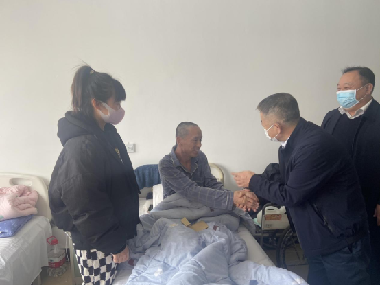 3月2日,地方水电集团党委书记、董事长谭英,党委副书记、总经理徐洪卫,党委副书记、工会主席杨辉一行,到吉林省工伤康复中心医院看望慰问正在这里进行康复治疗的见义勇为受伤员工石春泉。送去了公司党委及工会的关怀与祝福,并向他送去了慰问金和慰问品。