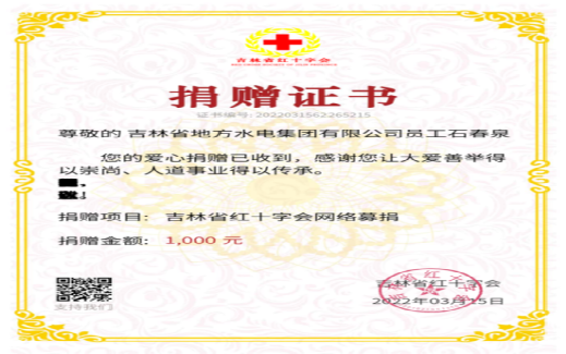 地方水电集团工会代表石春泉将他的一千元现金捐款到了吉林省红十字会用于新冠疫情防控捐款的帐户,地方电力靖宇分公司将他的一千元捐资,全部代其购买了防疫物质,现已全部送到了一线防疫人员手中。