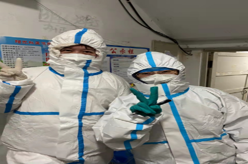 作为高三孩子的母亲,她坚强的撑起了抗击疫情的半边天,发挥了巾帼不让须眉的勇气与担当。收到地方水电集团下发的省委组织部关于“敲门行动”的通知后,孙辉积极与阳光社区网格长联系,在第一时间加入了“敲门行动”志愿者行列。孙辉说:“志愿者的工作是非常辛苦的,我从志愿小白一直到现在的较为成熟的志愿者,经历了一些困难以及另人感动的事情...困难的是第一天参加志愿者时,因为穿的比较多,防护服又不透气,志愿者需要为小区内居民挨家挨户送"鼻试纸",我负责的小区是多层,一栋楼有五个单元,70余户居民,一个单元七层楼下来就满身都是汗,带着防护胶皮手套的手都是湿的,从一单元出来二单元的门无法打开等了许久被汗水打湿的手冻的通红,一身的汗,在冷风中吹得浑身瑟瑟发抖,跑完整个单位楼,防护服里面的衣服已经湿透了,为了不把细菌带回家,防护服脱在了指定地点,这样我再穿着打湿的衣服,在冷风中跑回了家,第二天,头晕头痛一系列不舒服的情况发生了,吃了一天的药,睡了一天的觉,恢复了体力,第三天在网格长的召集下继续上岗。”感动的是在志愿服务中,属地社区网格长悉知孙辉与同行的另一位志愿者一位是六个月孩子的母亲、一位是高三孩子的母亲时,不禁感动了,留下了这张在这场战“疫”中温情的照片。