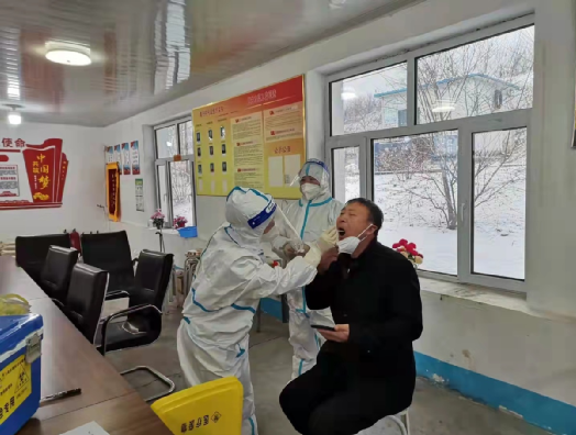 “各位父老相亲,请大家戴好口罩,保持好安全距离,有序排队,提前出示健康码和行程码,以方便工作人员进行信息采集”。为了配合好当地政府开展核酸检测稳步有序进行,“不落一户,不漏一人”工作队员竭尽所能,通知到每一户村民家中,对于行动不便的村民,驱车进行接送,工作队员不畏严寒酷雪,耐心的向在场村民讲解流程及注意事项,维持秩序,保证核酸样本采集工作顺利安全完成。通过三天的努力,累计完成了两村873人的全员核酸检测工作。