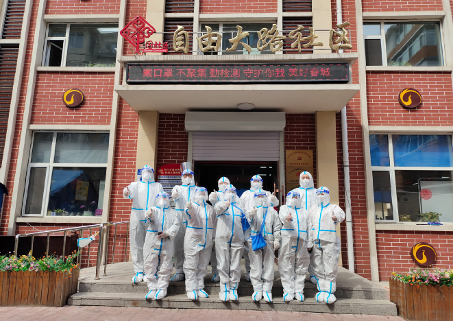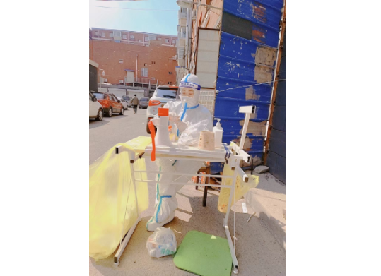 徐丹丹同志居住的小区由于隔壁单元有确诊病例,所以报名志愿者后社区一直未派发任务。从3月26号开始到4月16号她所居住的小区一直属于封控管制楼,直至4月16日解除封控后,4月17日她就迅速下沉到曙光街道平阳社区发放试剂盒,主要工作任务是发放试剂盒、配合社区组织社区内居民全员核酸检测,派发物质等工作,由于她所居住的社区属于老城区没有电梯,每日爬楼7-10栋楼不等。截止目前,她已经下沉8天,累积发放试剂盒500余份,参与全员核酸任务服务2000余人,派发物资150余份,同时还多次完成卡点儿执勤工作。她说:“我会一直坚守在人民群众需要我的地方,一直坚持到最后,直至完全清零”。