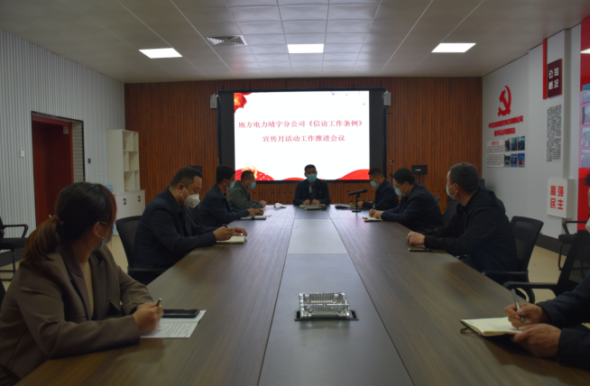 5月19日,吉林省地方电力有限公司靖宇分公司党委书记、经理赵宏伟主持召开了《信访工作条例》推进会议,会议强调,各部门、基层单位要把学习贯彻《信访工作条例》作为当前和今后一个时期重要政治任务。提高政治站位,确保不折不扣抓好贯彻落实,加强培训宣传,创造良好信访环境,提升信访工作水平。